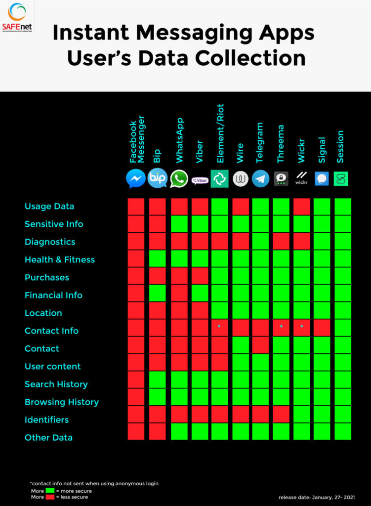 There are a growing number of messaging applications available to us, but many of these are not transparent in the amount of user data they collect and the lack of privacy measures in place to secure our conversations. Facebook, for example, is implementing changes that will force the users of WhatsApp, one of the most widely used messaging apps, to accept its new controversial privacy policy that will allow the harvesting of users’ metadata for marketing purposes.